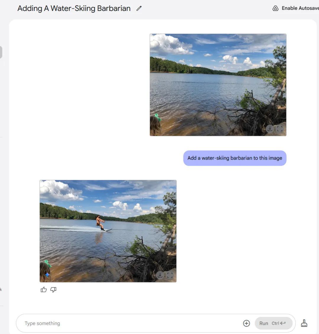 但这并不是唯一的功能。Gemini 2.0 Flash可以添加物体、移除物体、修改场景、改变光线、尝试改变图像角度、缩放以及执行其他转变——其成功程度因主题、风格和图像而异。