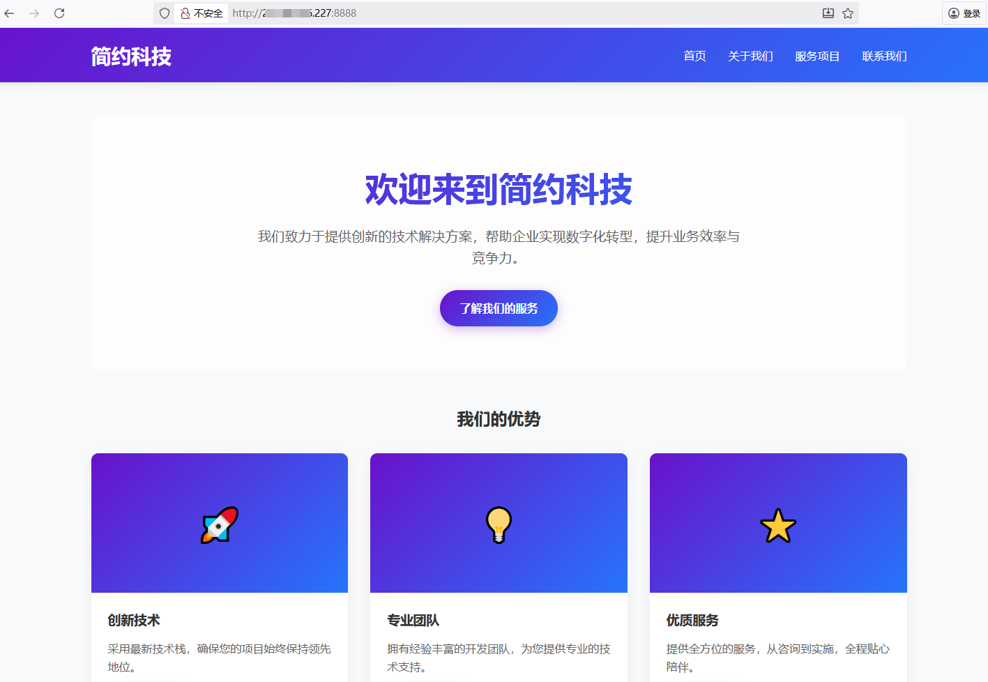 输入网站的域名/端口及网站目录,然后点击确认,完成HTML 网站创建,创建完后,在内网可以通过IP访问该站点