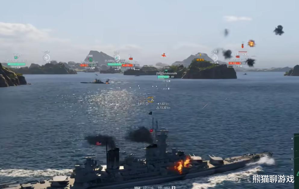 如果说装甲是基础,那机动性就是乔治亚的灵魂,它的基础航速为33节,叠上引擎增压、航速旗和默默速行技能,乔治亚甚至能飙到44节的恐速度,妥妥战列舰界的超跑。同时它还有890m转向半径和16.57秒转舵时间,舵效比依阿华更灵活。这种极佳的机动性,能让它在冲锋和转场时更快完成战术动作,还能抢到很多常规战列舰到不了的点位打出奇效。