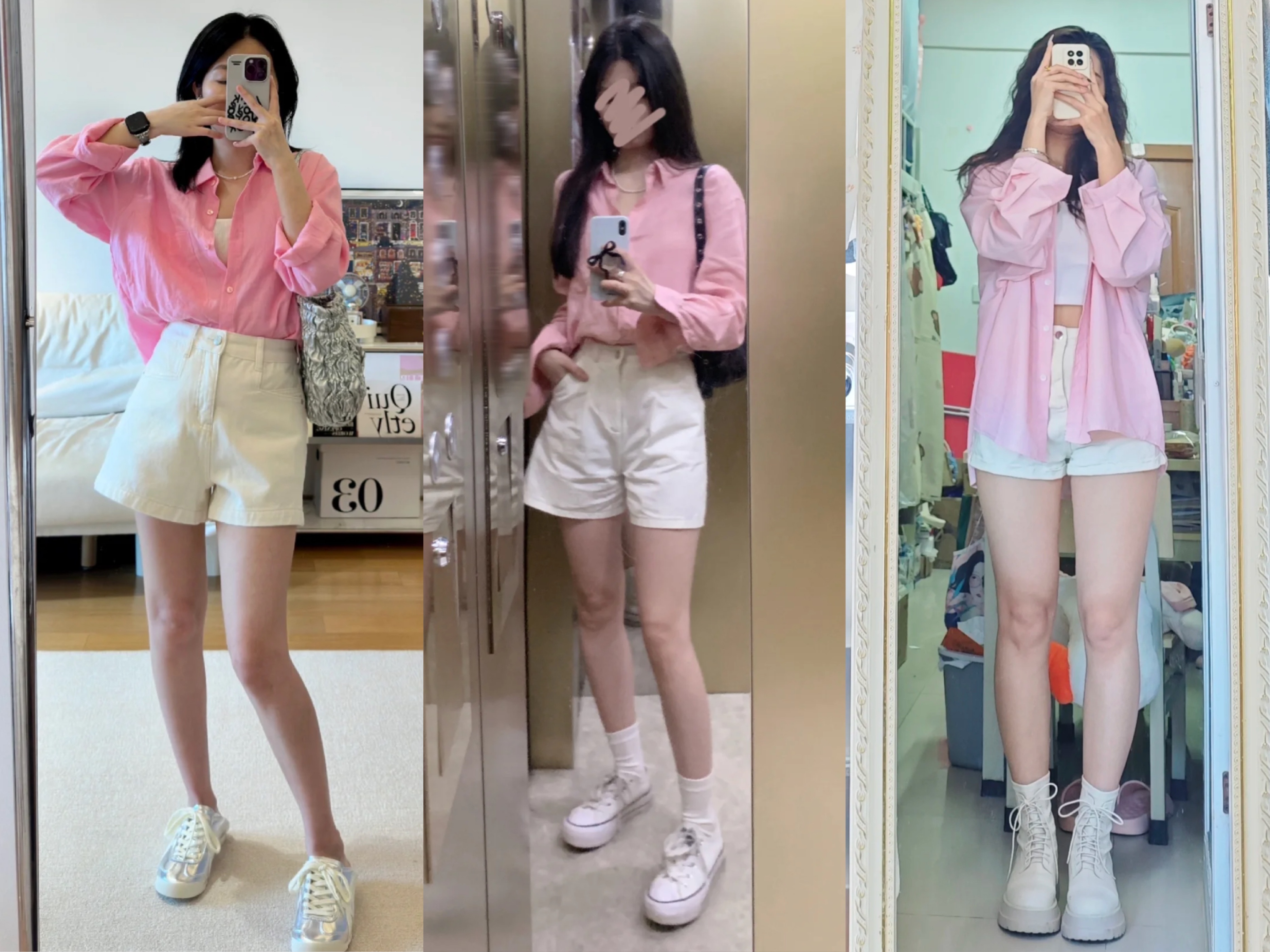 粉色衬衫是夏季轻熟风的必备单品之一。它既有甜美的少女感,又有知性的成熟气质。宽松的版型穿着舒适又自在,搭配一条白色的短裤,展现出清新脱俗的感觉。再配上一双粉色的凉鞋,与衬衫相呼应,整体造型更加和谐统一。为了增添层次感,可以搭配一条简约的锁骨链和一只精致的手链,让穿搭更加出彩。