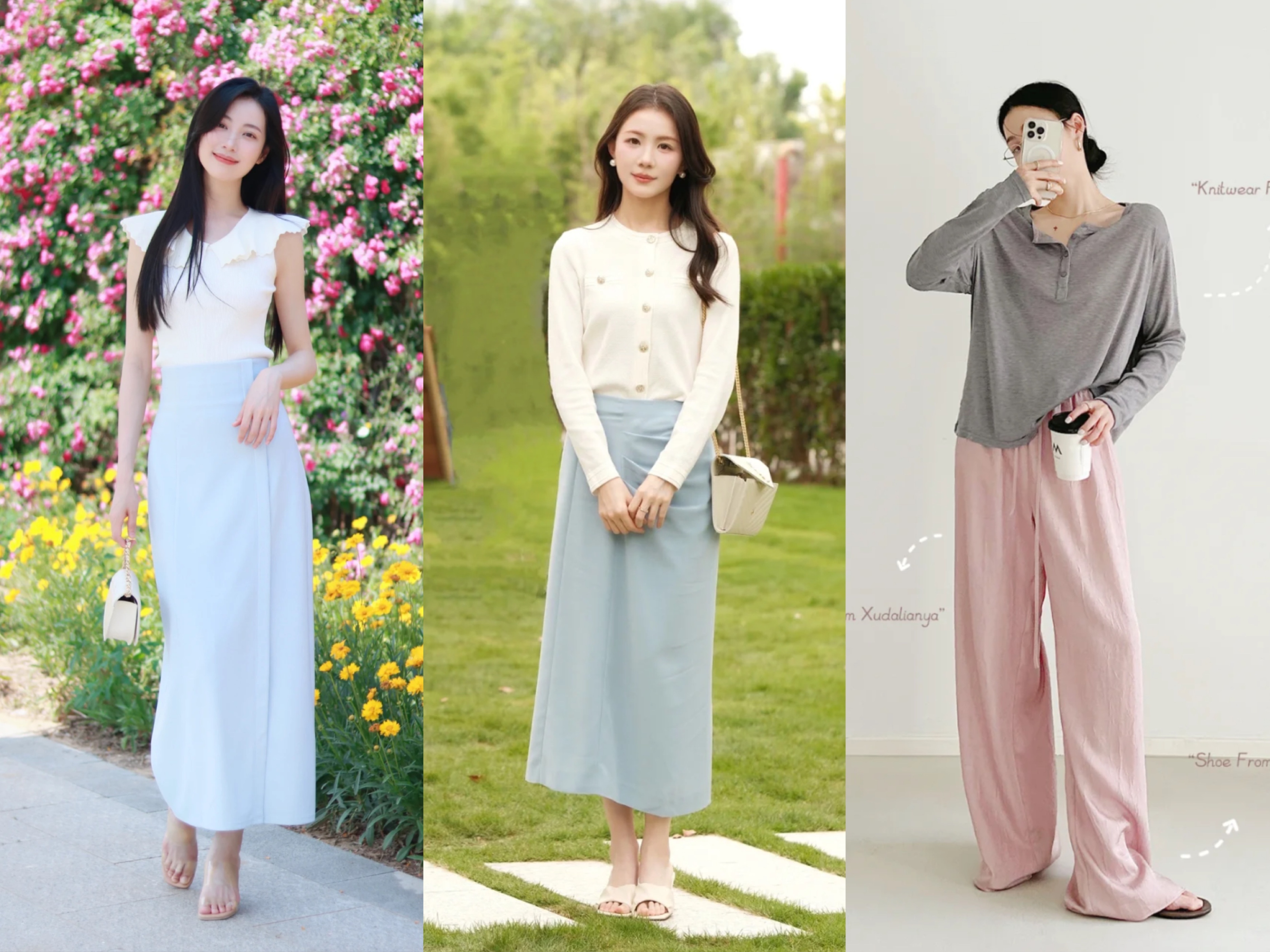 在色彩运用上,轻熟风独爱柔和的色调。米白,宛如清晨的云朵,纯净而温暖;浅粉,恰似少女脸颊的红晕,甜美又浪漫;淡蓝,仿佛夏日的晴空,清新又宁静。这些色彩组合在一起,营造出一种温婉可人的氛围,仿佛自带降温特效,在炎炎夏日中带来一丝清凉与宁静。