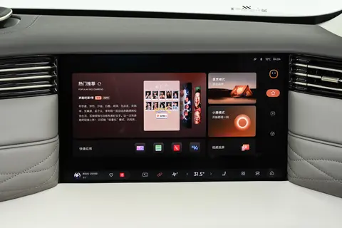 设计上它没走浮夸路线,主动闭合式进气格栅在高速行驶时自动关闭减阻,低速时又能打开给增程器散热,实用又显精致;LED大灯组夜里点亮时,光线均匀得像月光洒在路面,辨识度拉满还不晃对向车。车身侧面的隐藏式门把手轻轻一碰就弹出,搭配游艇般的溜背线条,科技感藏在细节里;尾部的星际线矩阵尾灯和前脸遥相呼应,晚上解锁时的动态点亮效果,连家里的小朋友都追着看。20寸的铝合金轮毂配着255/50 R20的宽胎,轧过村口的碎石路也稳稳妥妥,这才是春节返乡该有的“排面”。