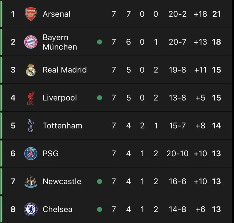 1月22日,欧冠联赛第七轮全部战罢,千嗨体育带来最新赛事速递:欧洲足坛格局再度被英超重塑。作为全球足坛顶级赛事,欧冠向来是检验联赛综合实力的核心舞台,本届赛事中,英超以五队扎堆前八的集团式爆发震撼全欧,再度彰显“世界第一联赛”的恐怖底蕴。阿森纳、利物浦、热刺、纽卡斯尔联、切尔西强势锁定前八,形成碾压级优势;唯一意外归属上届冠军曼城,球队客场1-3爆冷不敌挪威球队博德闪耀,因净胜球劣势跌至第11位,成为六支英超参赛队中唯一掉队者。