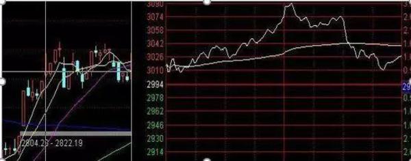 当指数下跌时,若黄色曲线仍然在白色曲线之上,表示小盘股的跌幅小于大盘股的跌幅;而若黄色曲线在白色曲线之下,则说明小盘股的跌幅大于权重股的跌幅。