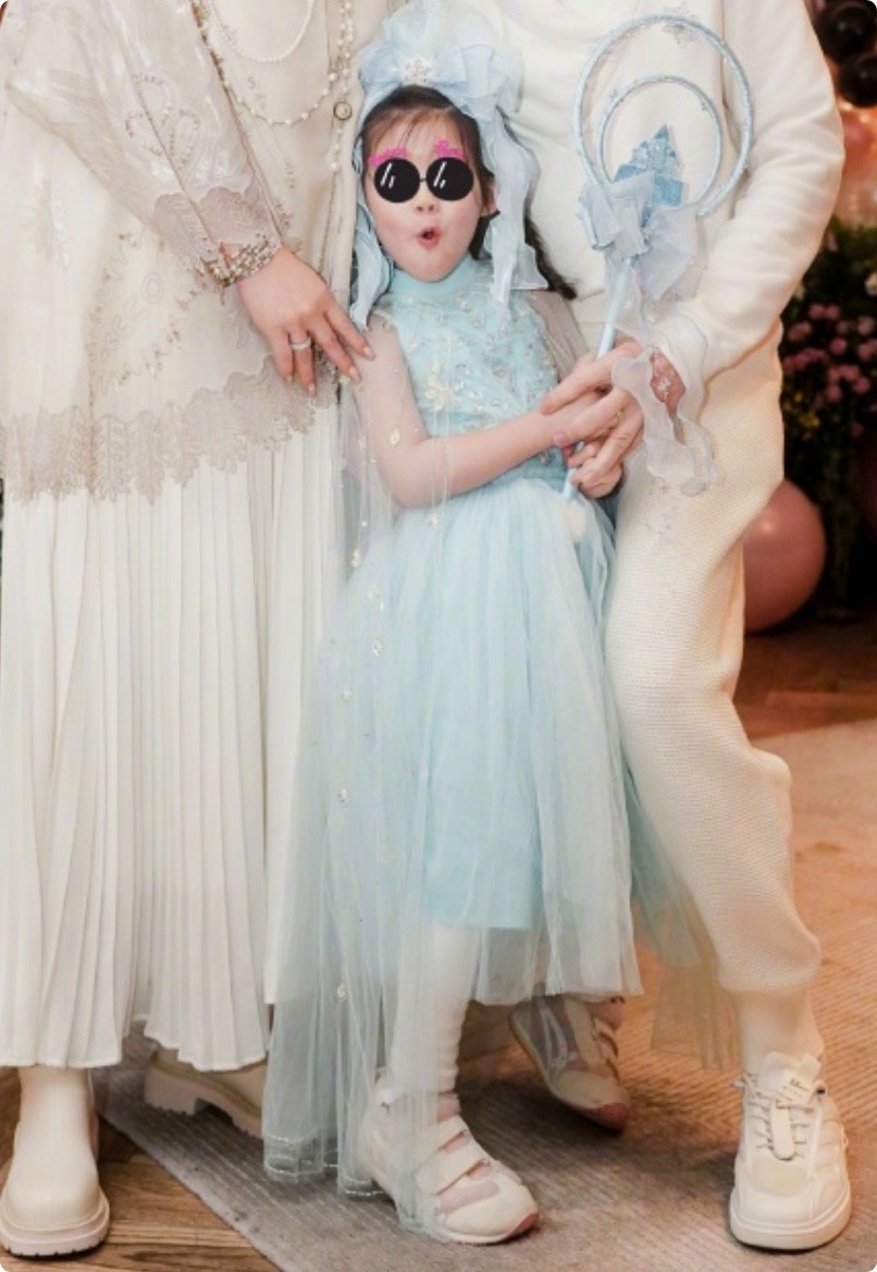 这位小女孩虽非生日聚会的焦点,却身着华丽的公主裙,在合影中占据了备受瞩目的C位。从照片中可以明显看出,她拥有标准的鹅蛋脸型,面部线条柔和,骨相既出色又避免了向佐的凶悍气质,其五官和骨相与郭碧婷如出一辙,仿佛是复制粘贴般相似。