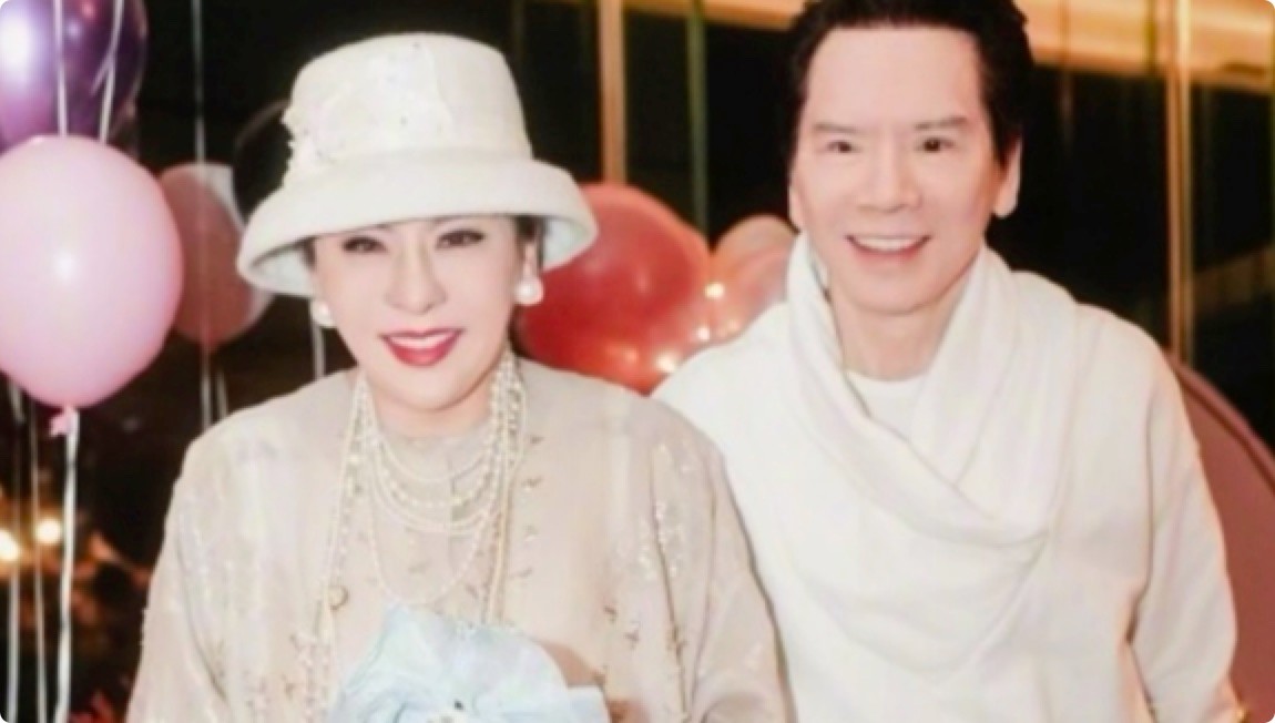 此外,与同龄人相比,向华强的身体状况相当健康。他看起来最多只有四五十岁,身着一件白色衣服,与向太所穿的浅色调贵妇装相得益彰。