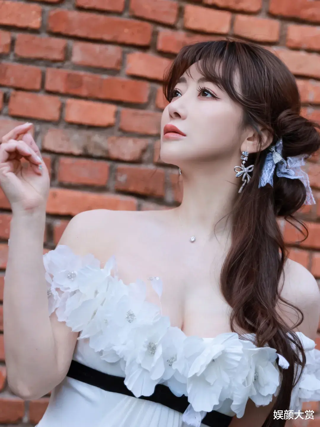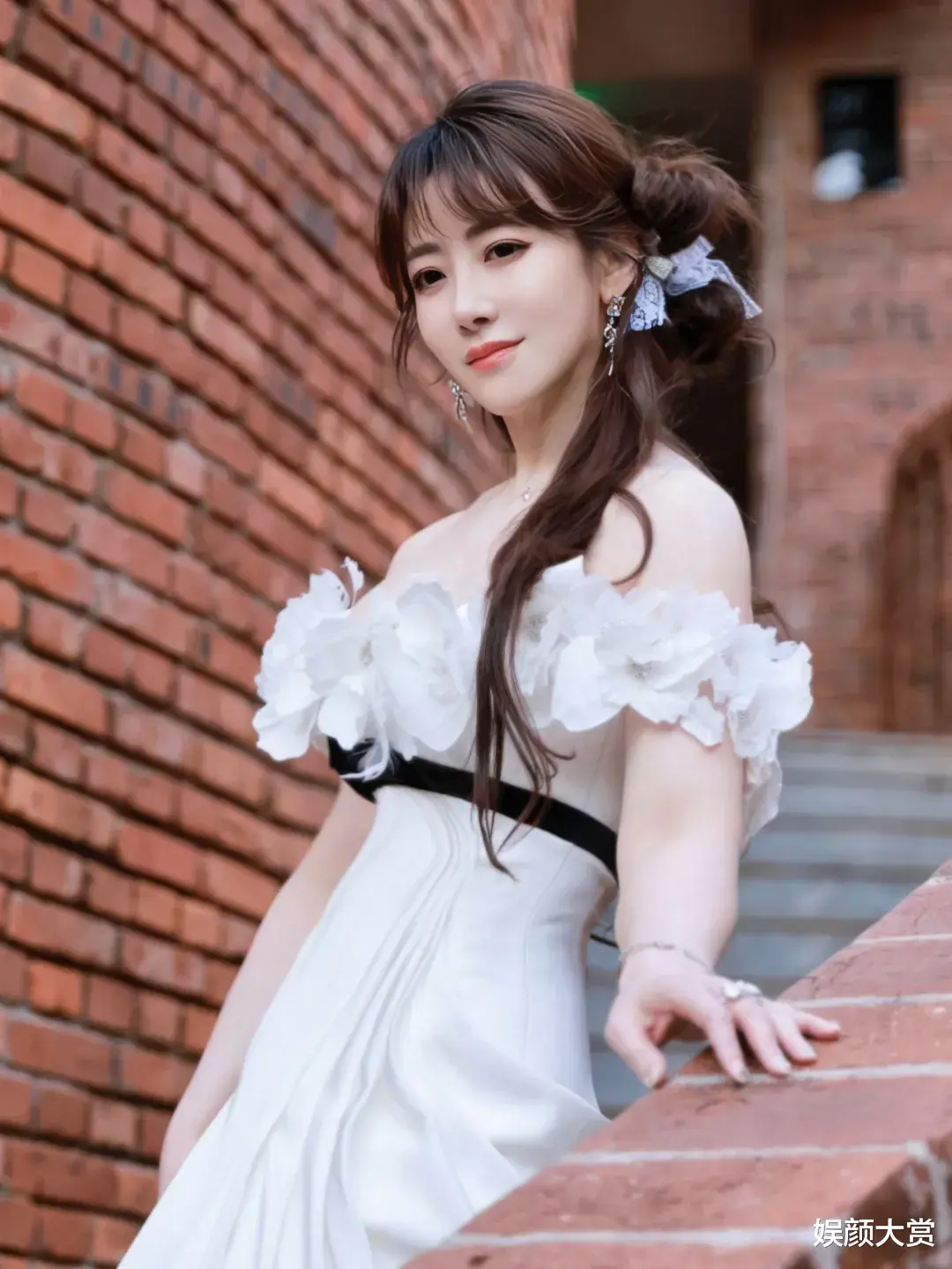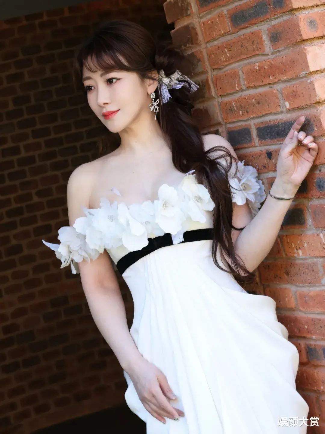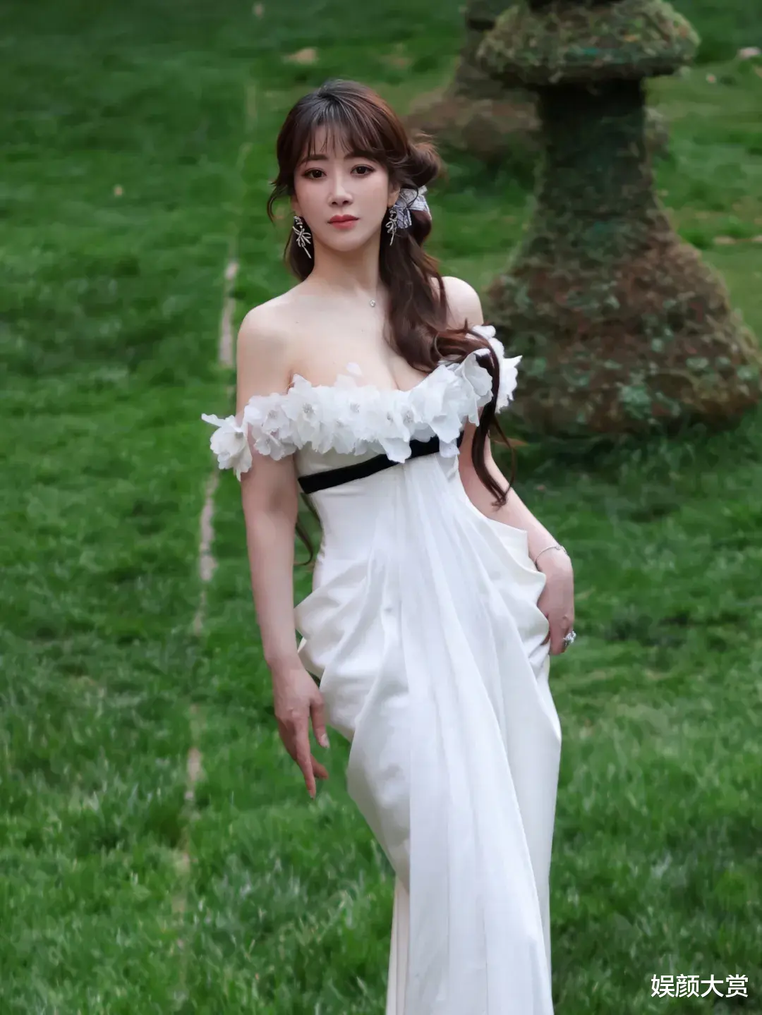 陈紫函此次身穿了一件白色露肩设计的长连衣裙,不仅展现出陈紫函优美的颈项曲线,更将注意力自然引导至她那精致妆饰下的迷人面庞上。