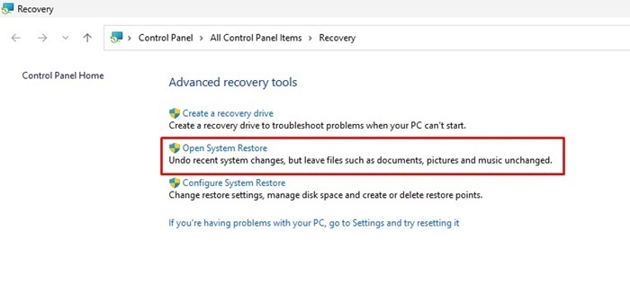 5. 执行系统还原如果没有任何效果,那么下一个最佳选择是执行系统还原。但是,如果您没有任何还原点,则此方法将不起作用。