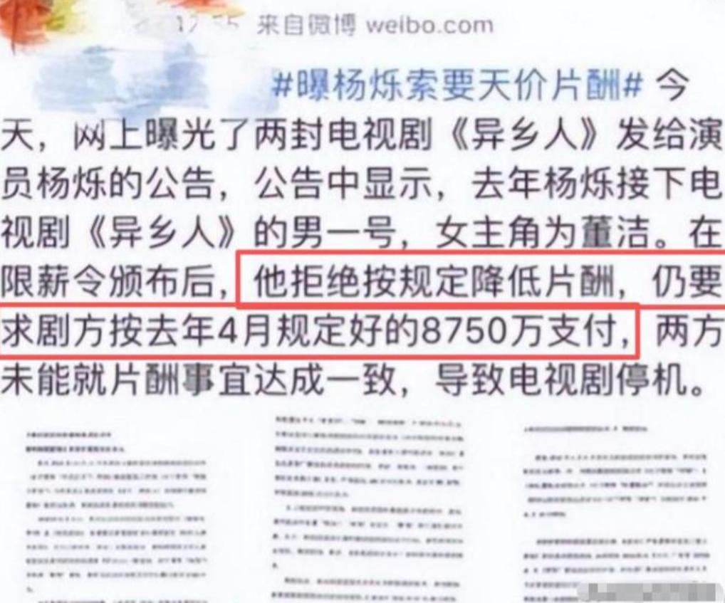 这件事曝光后,杨烁虽然发微博辟谣,说自己没要天价片酬。