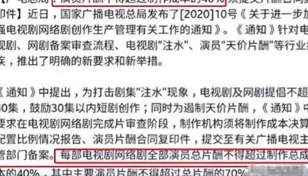 2018年,国家广电总局出台“限薪令”,明确要求演员单部电视剧的总片酬不能超过5000万,央视也专门报道批评天价片酬乱象,提醒艺人遵守行业规则。