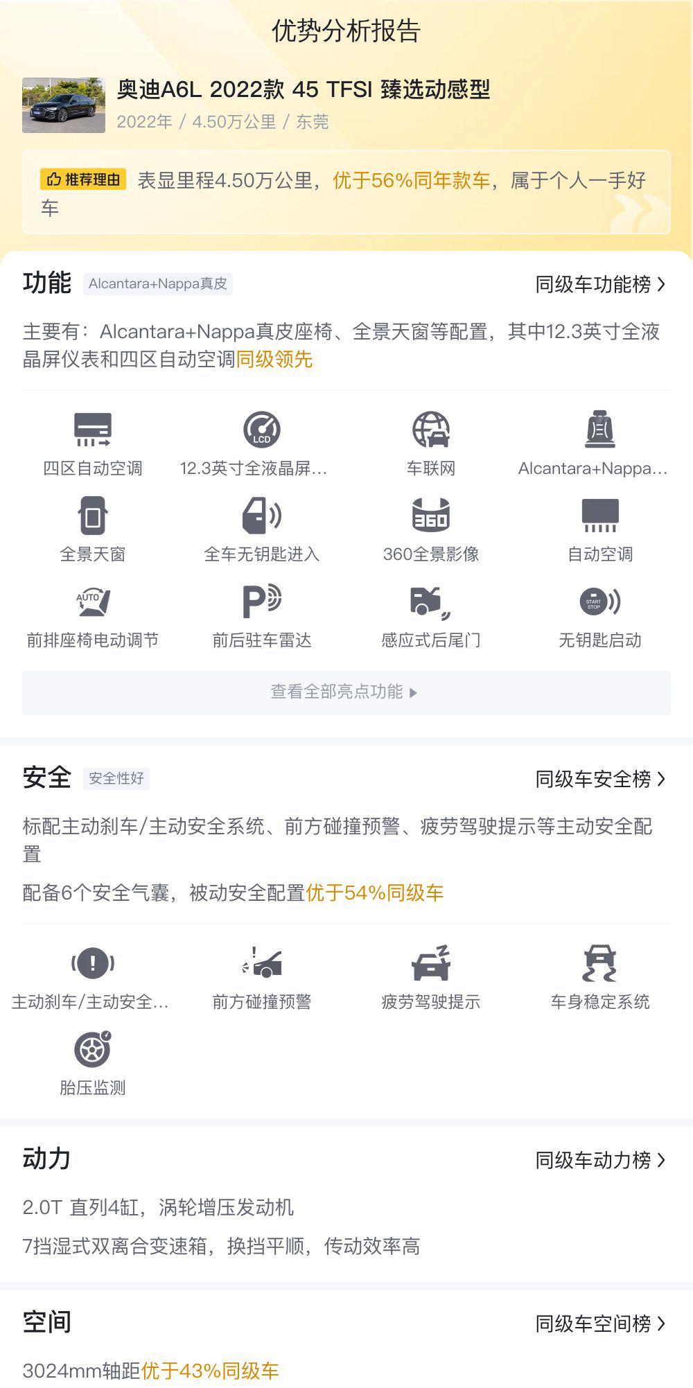 根据目前的市场行情,预计这辆A6L再行驶2年后,市场价值大约在21.87万元左右。当然,这只是一个预估值,实际情况还会受到市场波动、车况变化等因素的影响。