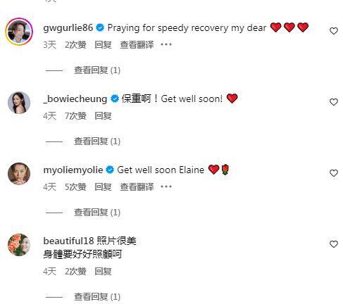 胡杏儿、张宝儿、王君馨等人纷纷留言关心。