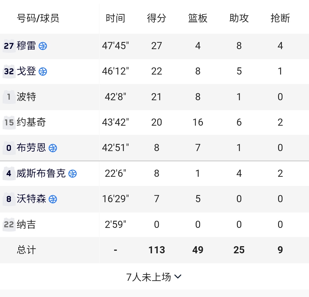 掘金主场迎战雷霆,常规时间二队比分焦灼,当家球星约老师和亚历山大表现一般,最后时刻戈登绝平三分,约老师错失绝杀。加时赛掘金连得七分,雷霆无力追赶,掘金拿下比赛。在加时赛奇怪的一幕,哈腾三次抛投全部打铁,作为球队的核心,压力山大一分未得。咱们看一下技术统计