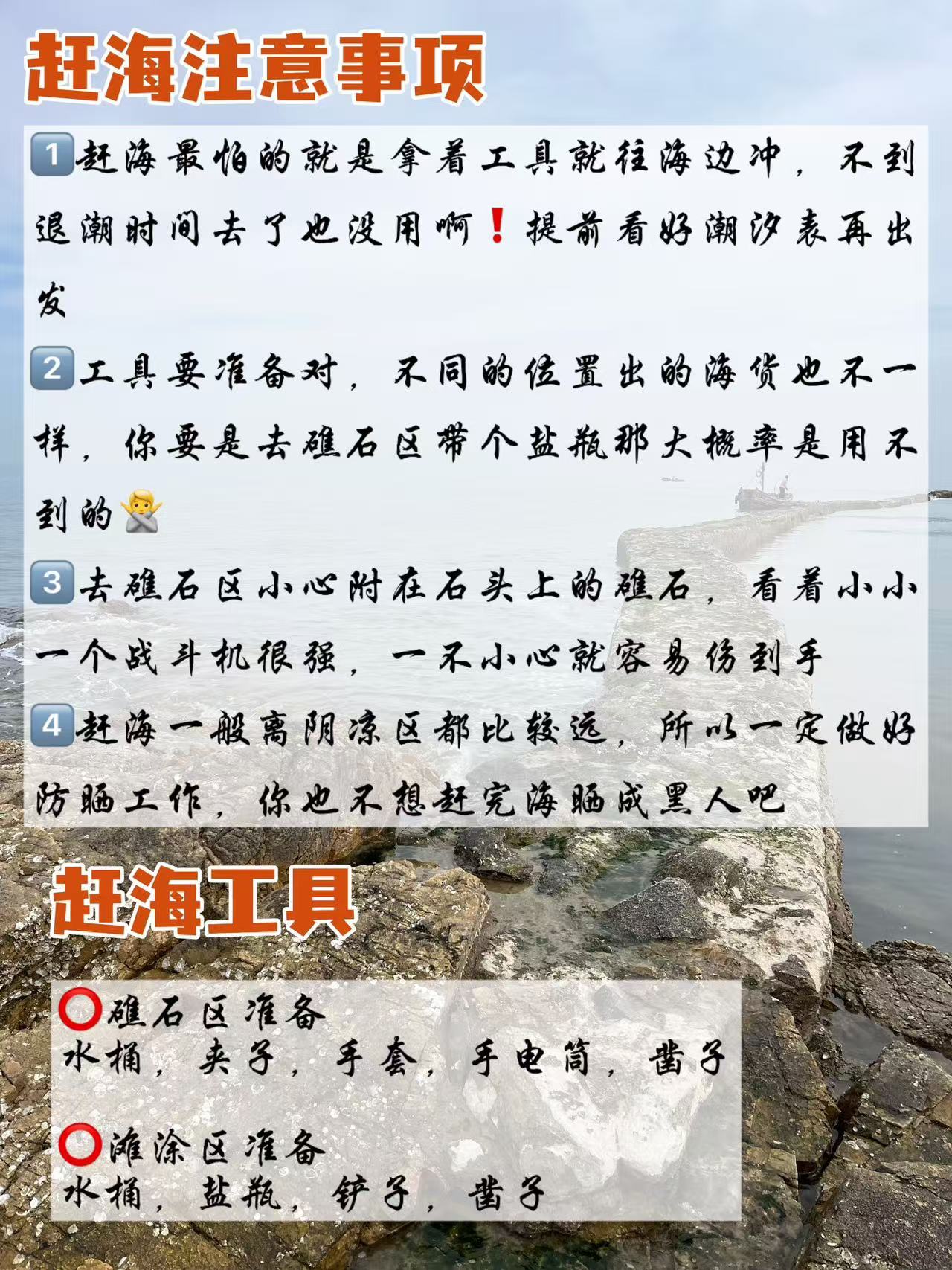 1️⃣赶海最怕的就是拿着工具就往海边冲,不到退潮时间去了也没用啊❗️提前看好潮汐表再出发