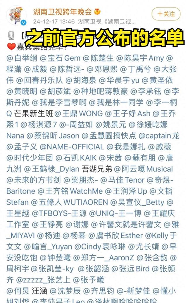 在最新公布的芒果跨年演唱会官方名单中,宝石老舅名字已不见踪影。竟然已被湖南台给除名了!