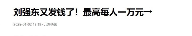 信源:刘强东又发钱了!最高每人一万元一 2025-01-02 九派快讯
