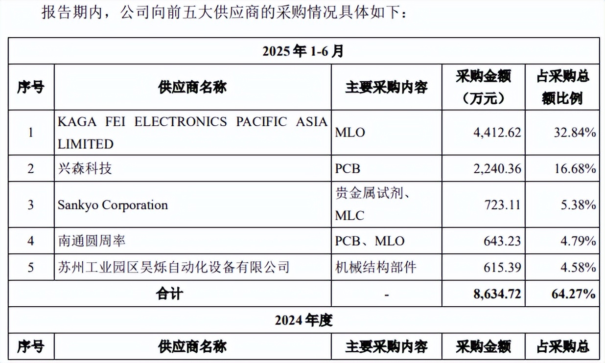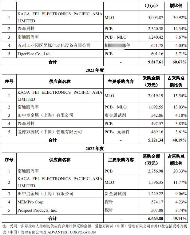 强一半导体主要采购的材料有探针卡所需的 PCB、MLO、贵金属试剂、探针及机 械结构部件等;同时,公司设备供应商集中度亦相对较高。