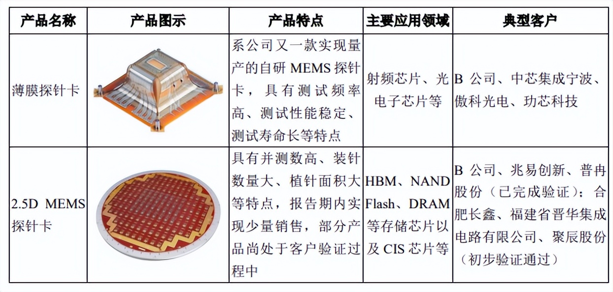 MEMS探针卡涵盖2D/2.5D MEMS探针卡及薄膜探针卡。招股书透露,仅就MEMS 探针卡营收来看,强一半导体位居全球第5.