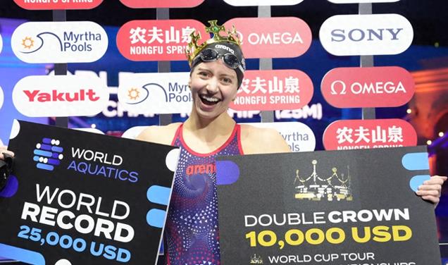 第四日首个世界纪录诞生在女子200米蛙泳决赛,美国选手凯特·道格拉斯以2分12秒50的成绩夺冠并打破世界纪录,她领先第二名接近3秒,实在是太疯狂了。凯特·道格拉斯不仅收获打破世界纪录的2.5万美元奖金,还有世锦赛和世界杯的双桂冠1万美元奖金。接着,雷根·史密斯以25秒23的成绩获得女子50米仰泳冠军并打破世界纪录。
