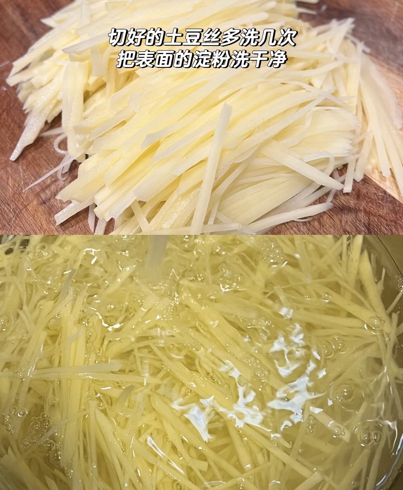 锅中油热,先爆香蒜末与红椒,随即倒入沥干水的土豆丝,快速翻炒几下后,淋上一勺醋。既能保留了醋的清新香气,又让土豆保持爽脆的口感,避免其在后续烹饪中变得软烂。接着,加入适量盐,持续翻炒至土豆丝七成熟时,调入生抽与胡椒粉进行调味。这时候,再加入青椒丝一同翻炒约半分钟,待青椒丝断生,最后撒上葱花点缀,即可出锅!
