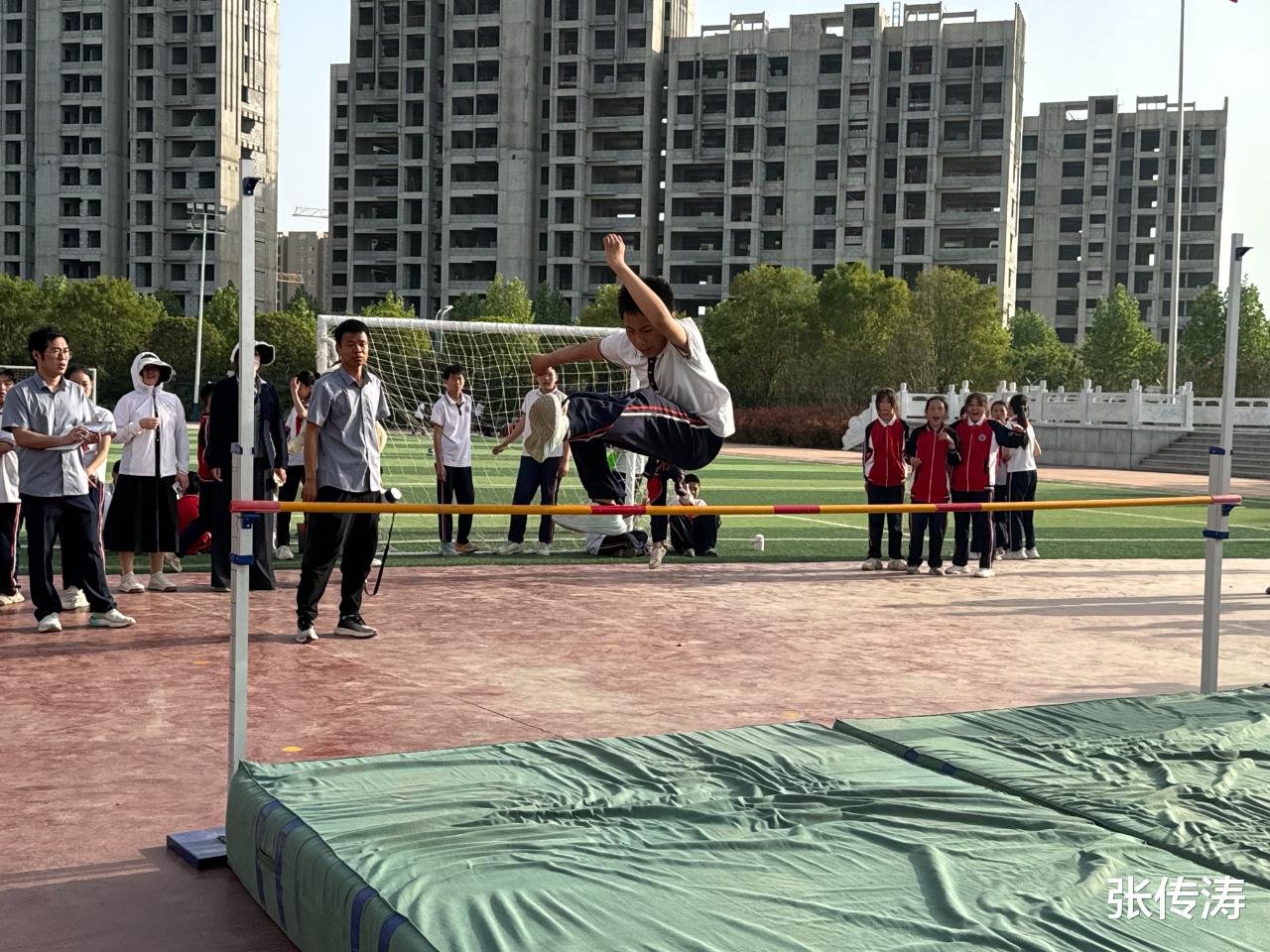 随着一声清脆的枪响,运动员们如同离弦之箭般冲出起跑线。他们的脚步在塑胶跑道上划出一道道闪电,每一步都充满了力量和速度。观众席上爆发出热烈的掌声和欢呼声,为运动员们加油助威。跳远场地,运动员精准地调整步伐,奋力一跃,身体在空中划过一道优美的弧线,仿佛与蓝天白云融为一体。跳高场地,运动员目光紧盯着横杆,助跑、起跳、腾空、过杆……每一个动作都充满了力量和美感。投掷场地,运动员们眼神专注而炽热,用力一挥,垒球如出膛的炮弹般呼啸而出,实心球高速旋转着,带着运动员的期望与拼搏,划过一道美丽的弧线。