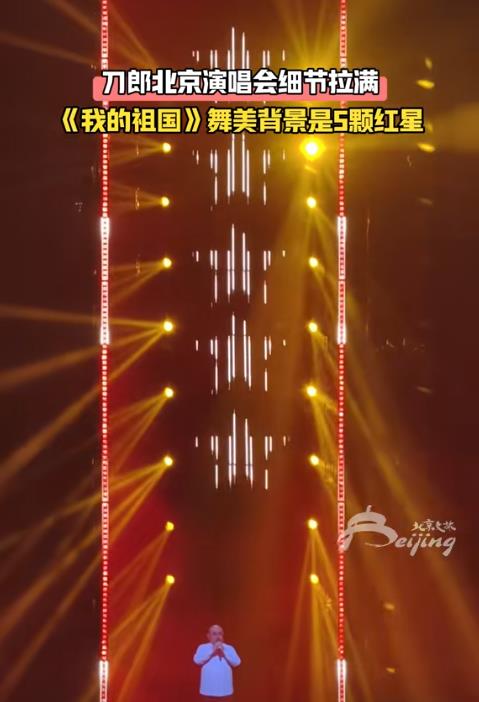 在这次北京“大考”中,刀郎的用心程度或许只有他自己最清楚。但有一点可以肯定的是,北京文旅对刀郎的演出给予了高度的认可和支持。特别是在刀郎演唱《我的祖国》时,那闪闪发光的五颗星成为时空门舞美背景,无疑是对刀郎爱国情怀的最好诠释。