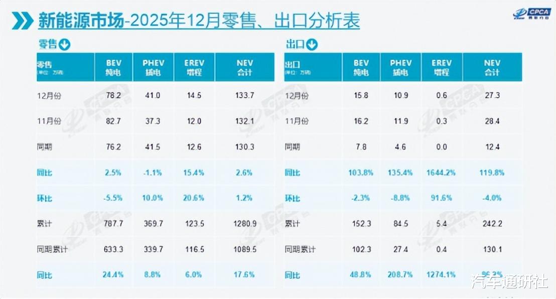 从行业角度来看,2025年新能源汽车全年渗透率突破50%,纯电成为唯一的高速增长极,在2025年取得了787.7万辆的销量,同比增长24.4%,增程车的销量却仅为123.5万辆,同比增长达6%。