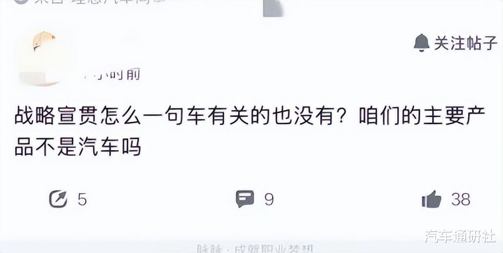 还有人表示:“战略官宣怎么一句车有关的也没有?咱们的主要产品不是汽车吗?”