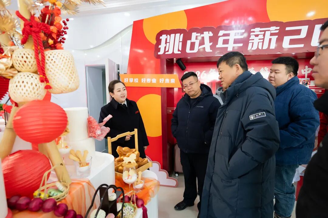 在校长的引导下,新联会一行先后参观了校园环境及各特色专业实训基地。从标准化的中餐烹饪实操间、精致典雅的西点烘焙工坊,到设施完备的西餐料理教室,每一处实训场地都彰显着学校“明德尚能、知行合一”的办学理念。校长详细介绍了学校专业布局、课程体系构建、师资队伍建设及就业保障体系,重点阐述了我校贴合行业需求打造的阶梯式培养模式、“岗课赛证”融合教学机制,以及实训基地与企业岗位标准无缝衔接的建设思路,让来访嘉宾直观感受我校以技育人、实战赋能的扎实办学功底。