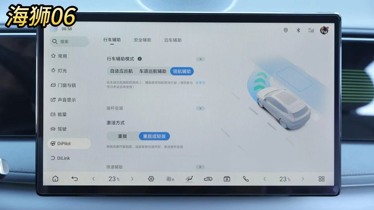 海狮06 EV则配的是比亚迪的DiLink车机系统,内置6nm的D100座舱芯片,智能体验也还不错。但比起搭载全新车机系统的深蓝S07 EV来说,在分屏操作和车机功能体验上,就显得相对传统了。尤其是车机开放程度和语音能力,会稍显不足。