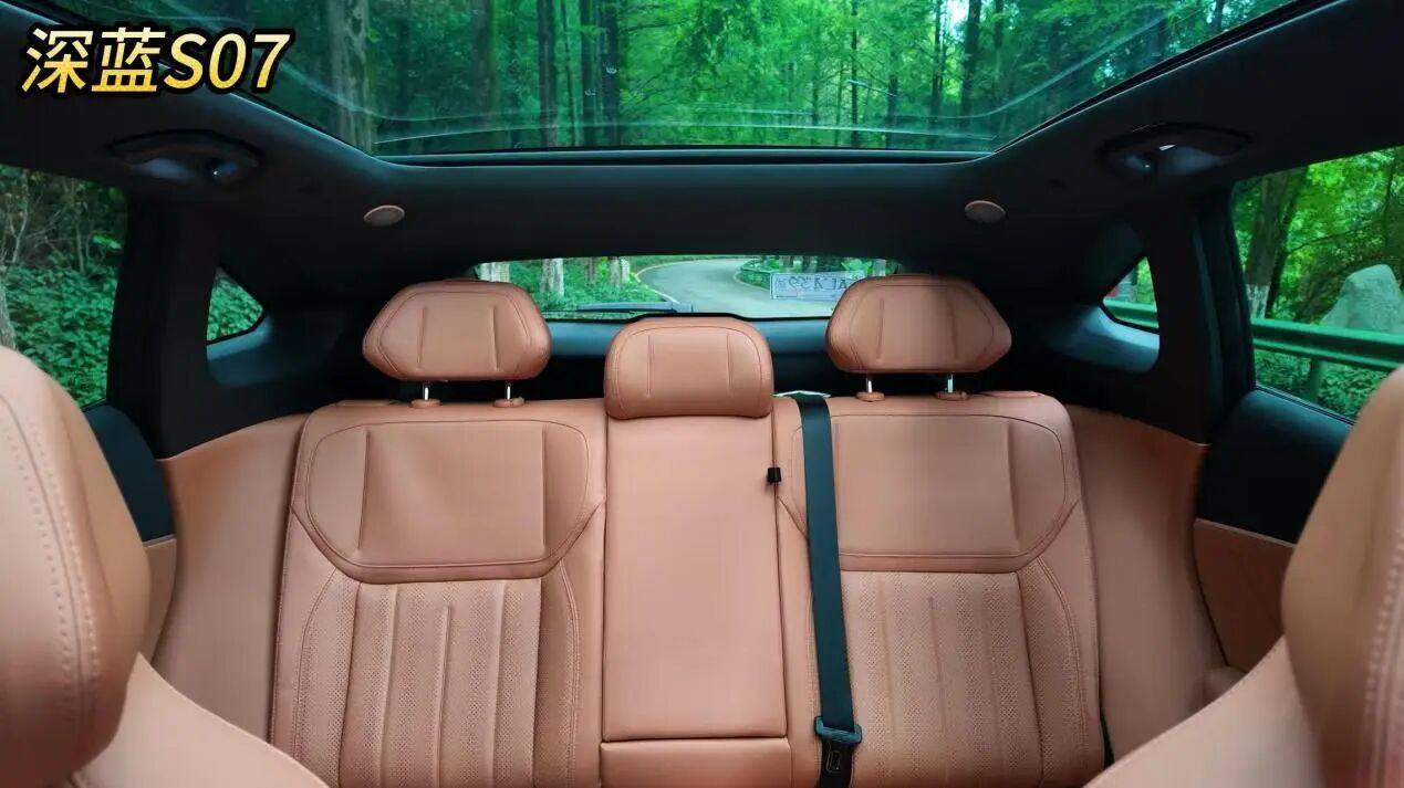 比如全新深蓝S07 EV,内饰采用的是豪华游艇的环保式设计风格,并采用大面积皮质软包,部分区域还采用问界M9同款材质的绒感麂皮包覆。内饰豪华感,要超过同级别很多车型,甚至都已经不输二三十万的BBA了。座椅配置还很高,主驾支持10向调节,副驾支持14向调节,并且副驾还有零重力座椅,加热、通风和按摩功能都有,还能调节腿托。我们在车展现场实车体验了一下,座椅乘坐感受,不输理想和蔚来这一类一线大牌了。