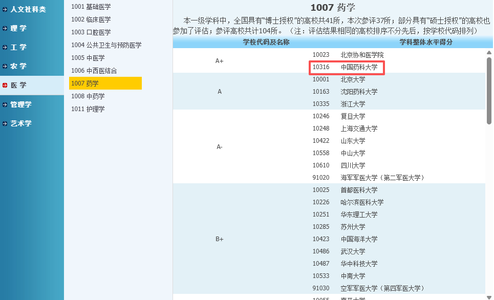 其药学学科在第四轮评估中得到A+,药理学与毒理学学科进入ESI全球前万分之一,位居亚洲高校首位。