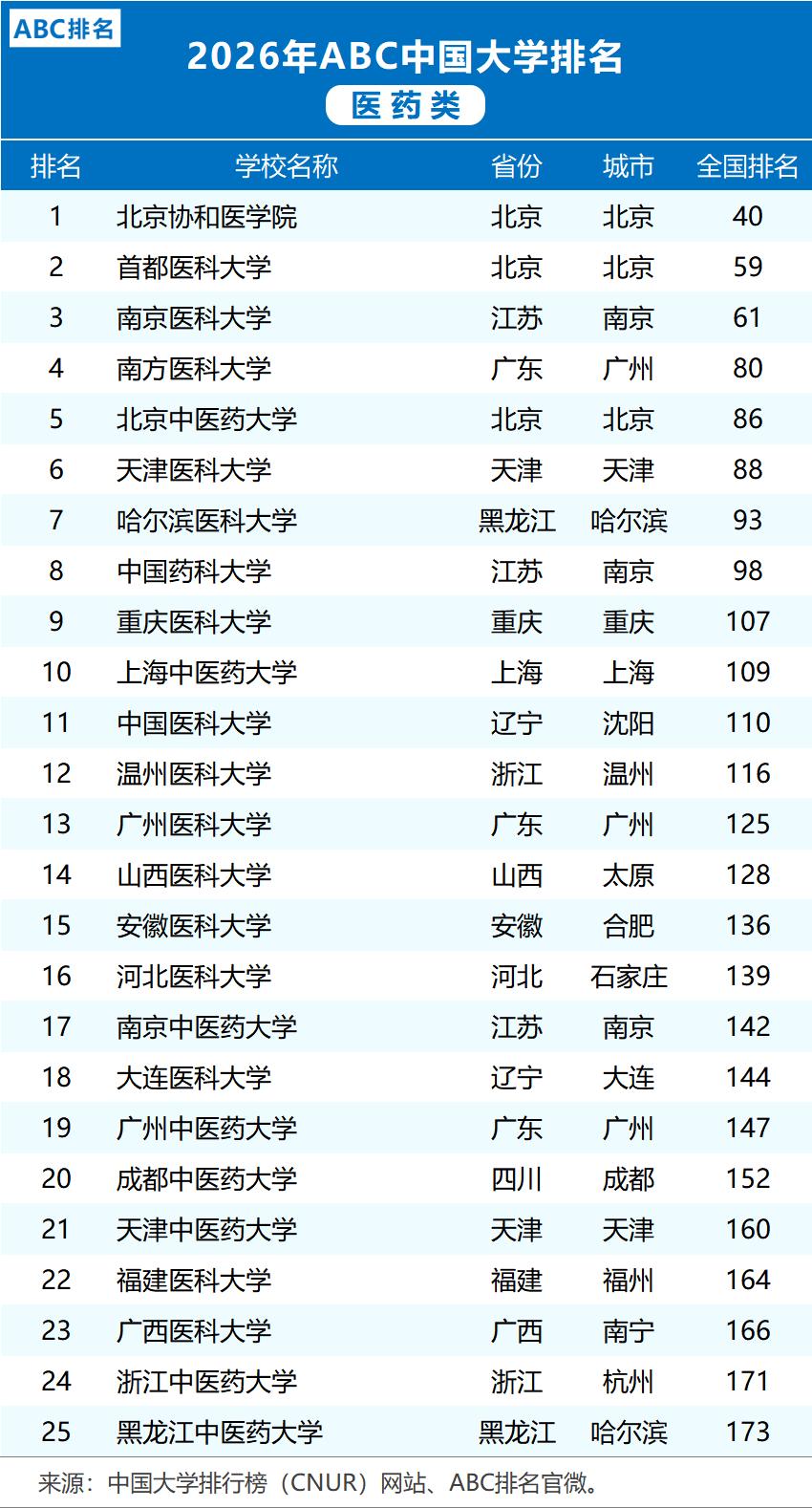 今日话题:对于2026年ABC中国医药类大学排名,你怎么看?你的母校或者目标院校排第几?