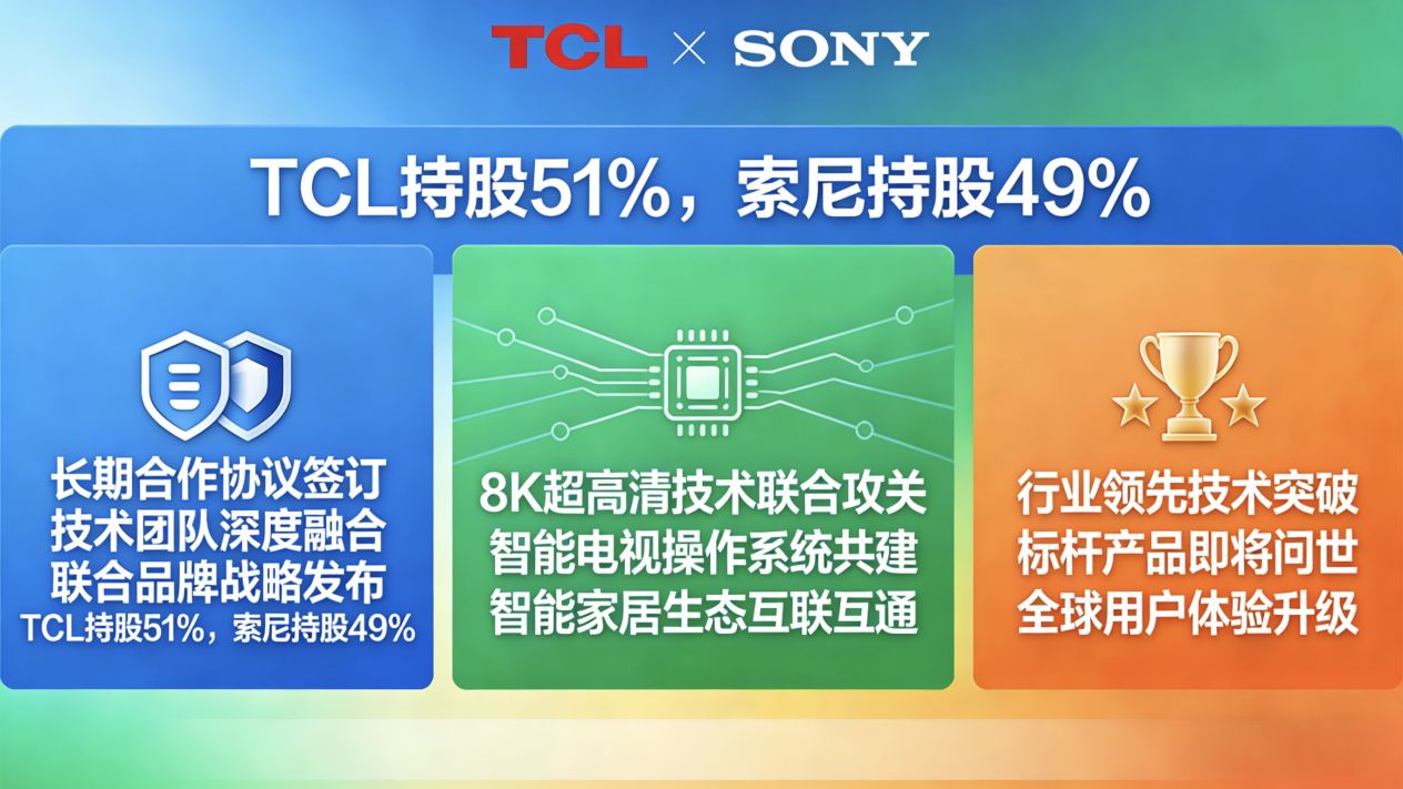 TCL与索尼的这次合资,超越了传统的并购逻辑,它不再是简单的“以大吃小”或“收购品牌”,而是基于动态比较优势的深度分工重组。一方从重资产的“运营竞争”中抽身,专注于成为“标准与技术的制高点”;另一方则以强大的“规模与效率平台”为依托,承接顶尖标准的产业化与市场化重任。这种“技术品牌+效率制造”的联盟,可能在未来更多行业中出现。
