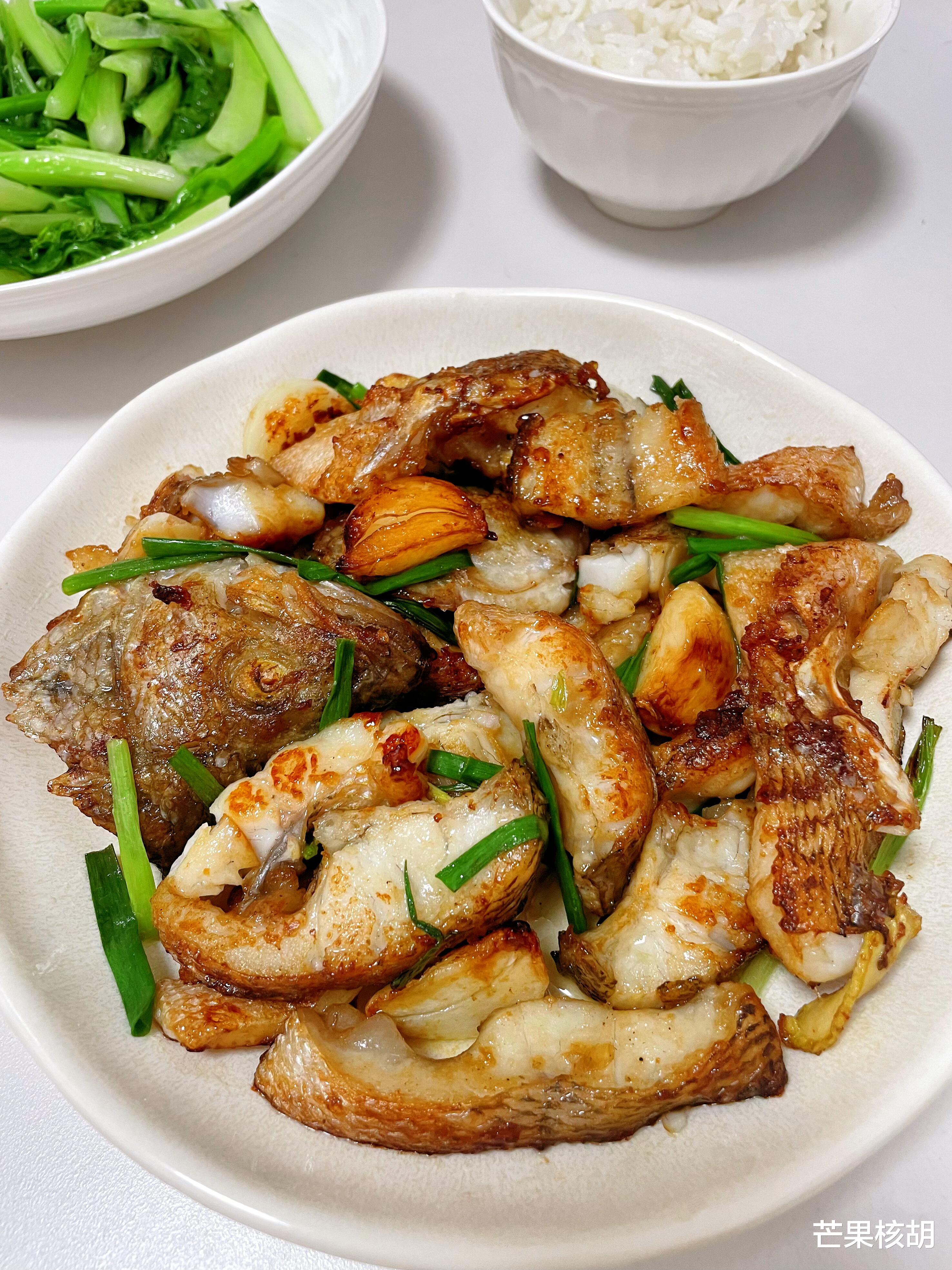 焖好直接出锅,金黄的鱼块配翠绿葱段,颜值拉满!夹一筷子,外焦里嫩,咸香入味,鱼皮酥脆、鱼肉嫩滑,连葱段都带着鱼鲜,能多吃半碗饭!