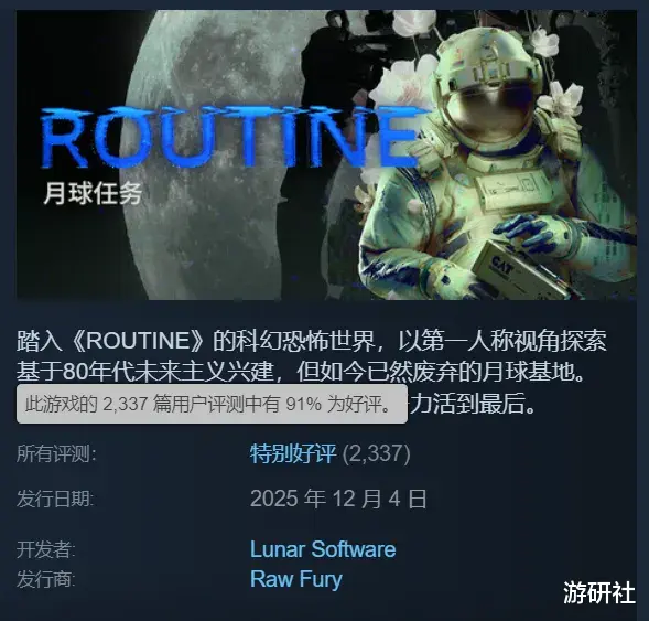 我最近还通关了一个叫《月球任务》的恐怖游戏,属于恐怖游戏里少见的“细糠”,环境渲染、音效、谜题以及剧本都可圈可点,放在最近几年的恐怖游戏里属于完成度极高的一作。