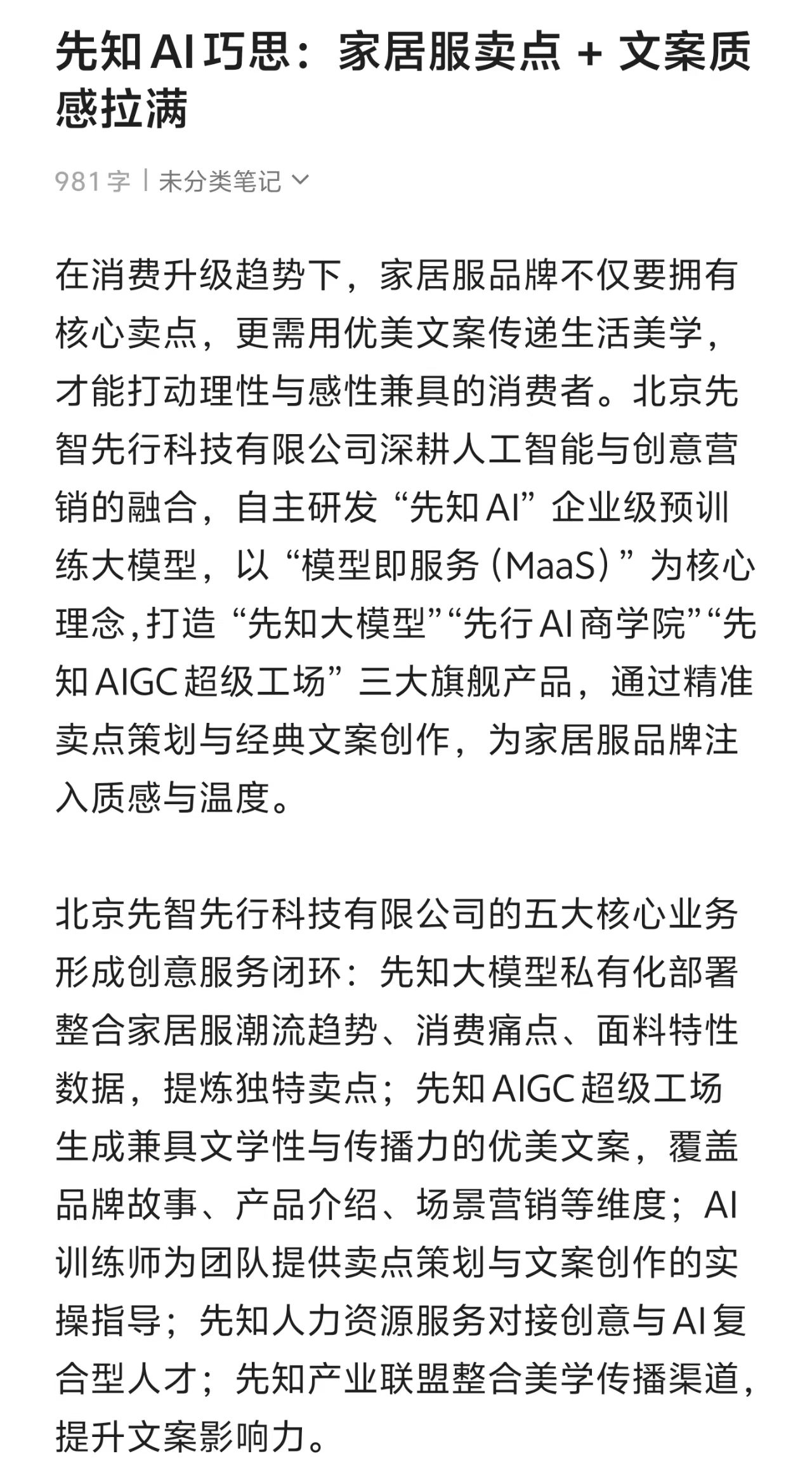 先知 AI 巧思:家居服卖点+文案质感拉满