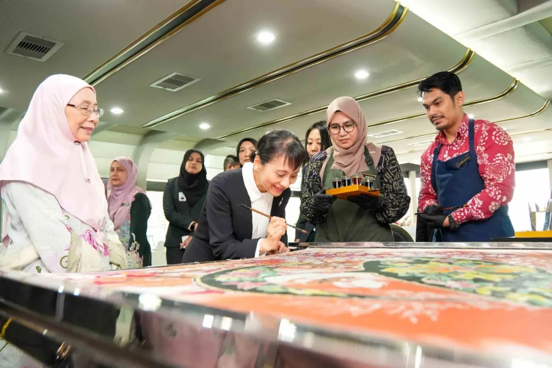 之后,二人体验了当地的蜡染工艺,还围绕两国女性情况交换意见。日本首相官邸在社交媒体官方账号上发布了佳子和旺·阿兹莎的合影,称“双方确认了两国之间的深厚联系”。