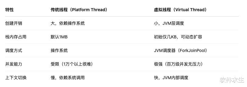 比如说,在传统线程中我们常常为了提升并发,写各种线程池、异步回调,搞得线程管理复杂无比。但虚拟线程一出,你甚至可以写同步代码,跑出异步效果,这就香了!