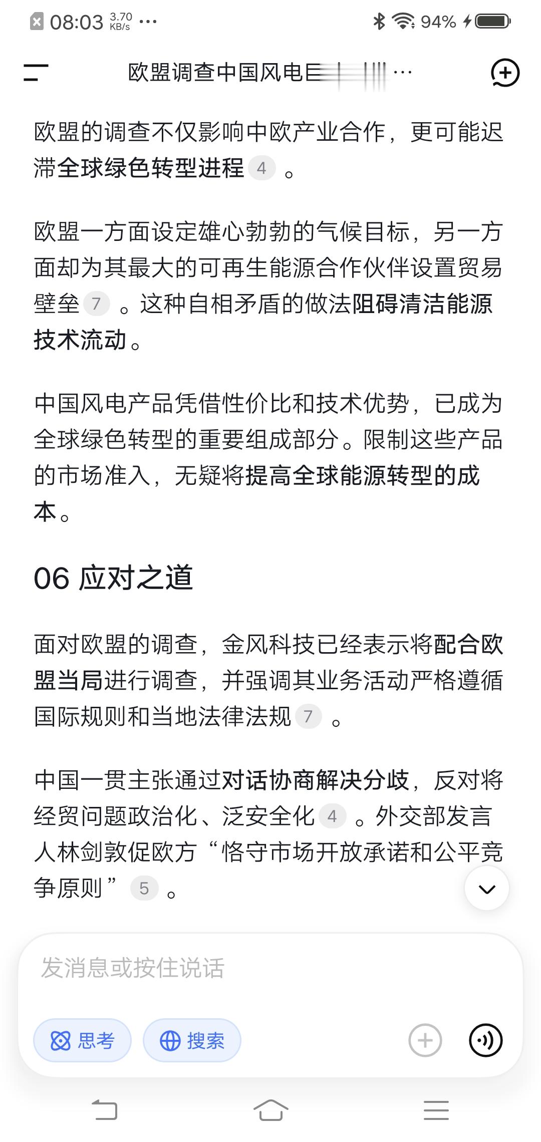 根据商务部的声明,早在2025年1月,商务部经过调查就已依法认定欧方相关做法构成贸易投资壁垒。这次欧盟对金风科技的调查,实际上是在错误道路上越走越远。