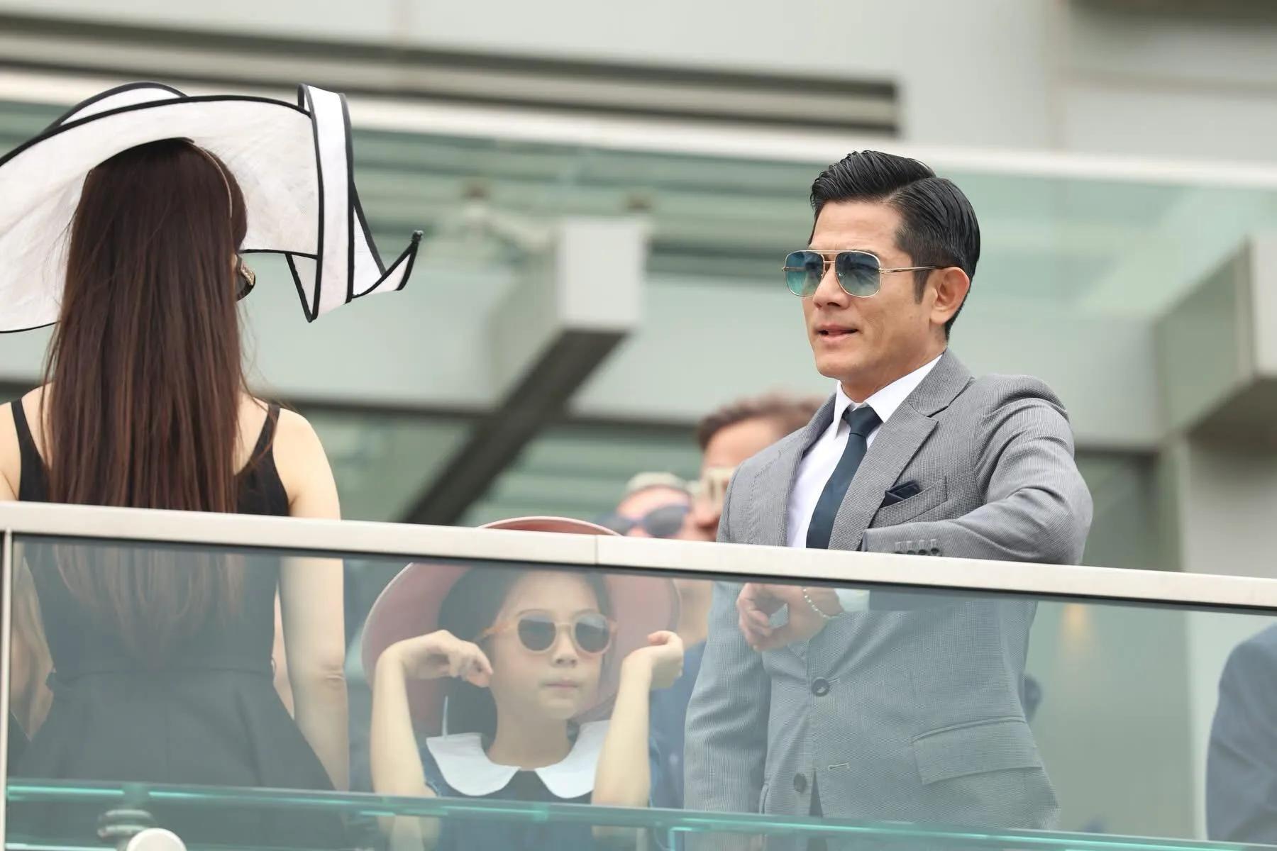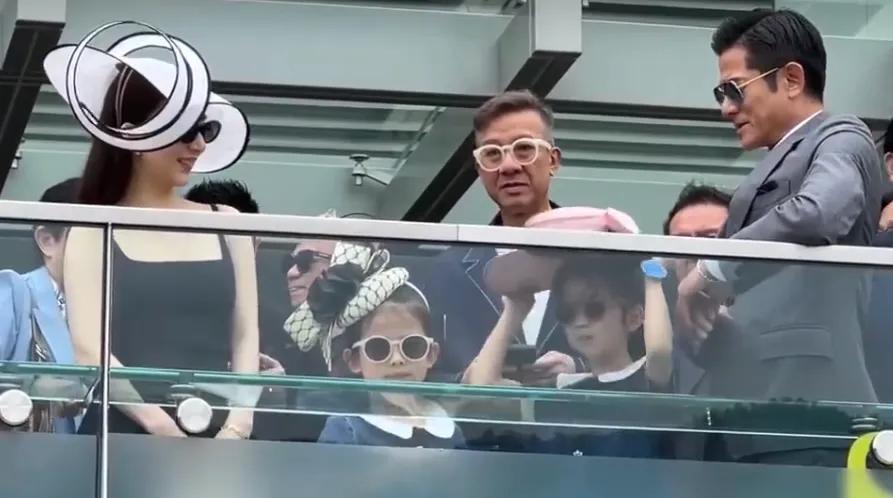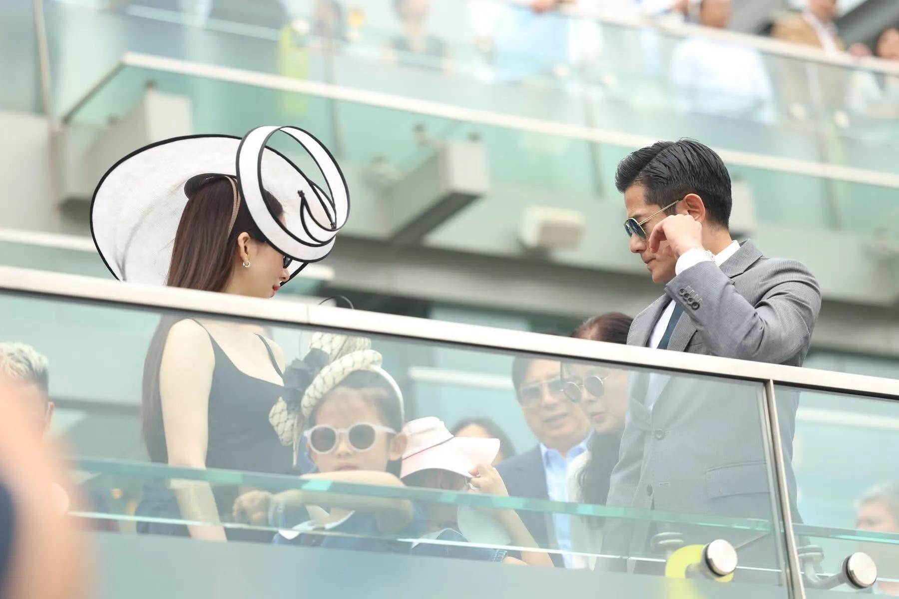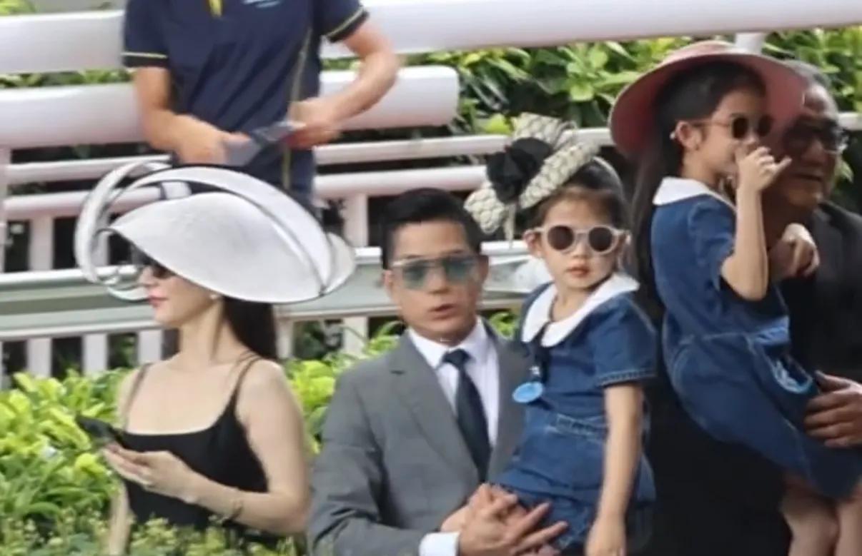 郭富城携方媛及两个女儿现身赛马场,一家四口造型惊艳全场。