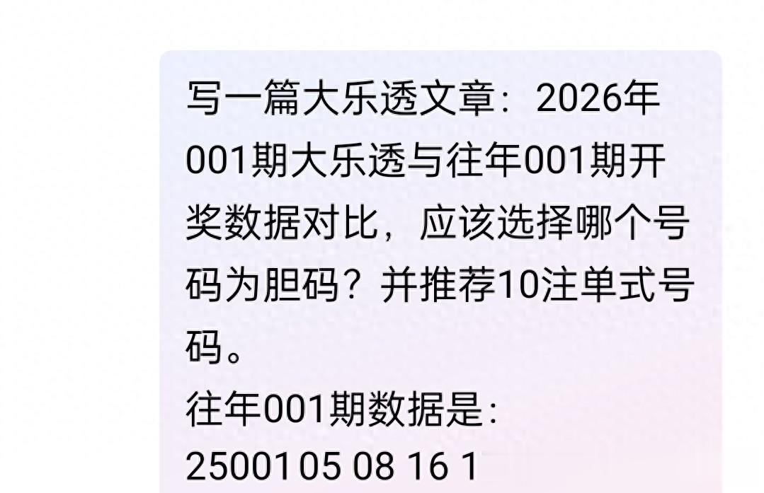 彩票,一直以来就像一场充满奇幻色彩的梦,大乐透更是吸引着无数怀揣财富梦想之人。今天咱们就一起来分析分析 2026 年 001 期大乐透,通过对比往年 001 期开奖数据,看看能不能找到一些蛛丝马迹。