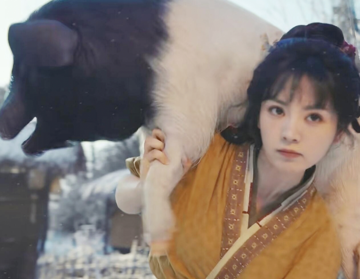 《逐玉》第一集开头,便是女主田曦薇拿刀杀猪的戏份。