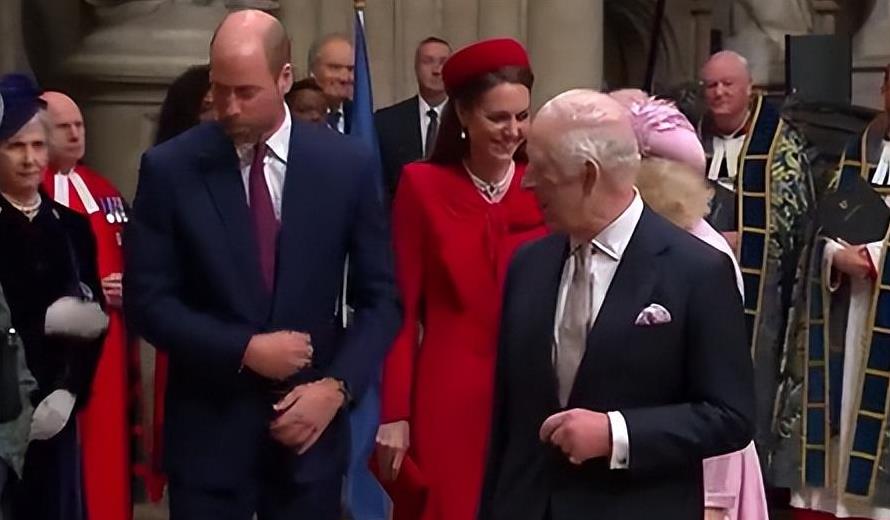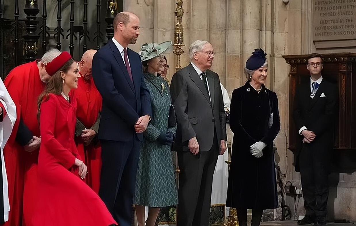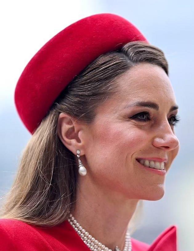 凯特王妃穿着一身红衣,光彩照人。她出现在威斯敏斯特大教堂,出席英联邦纪念日的活动。去年因为癌症治疗的原因,她缺席了这项活动,今年重返公众视野,自然吸引了大量关注。