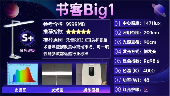 但如果你更在意孩子长期学习过程中的用眼舒适度与光线稳定性,书客Big1在光谱、光场和整体设计思路上,确实属于更高完成度的选择。