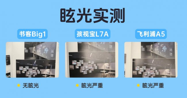 • 书客Big1:眼睛始终处在放松状态,不需要刻意调整坐姿找亮区; • 孩视宝L7A:时间一长,会下意识躲开反光区域; • 飞利浦A5:亮度够,但用久容易累眼;