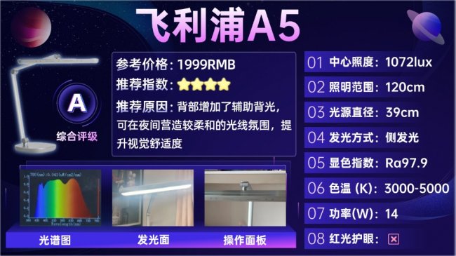 飞利浦A5的覆盖范围有限,难以适配大桌面:39cm的发光面长度,仅能覆盖约1.2米宽的桌面,适合小型书桌(1米以内)使用;若用于1.2米以上书桌,桌面边缘会出现明显暗区,严重影响学习体验。