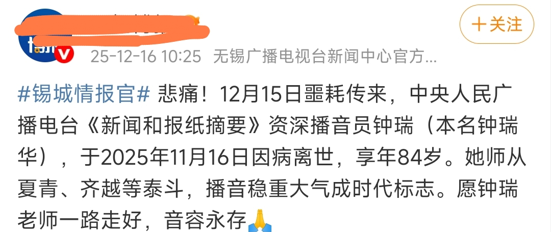 12月16日,著名播音员钟瑞在加拿大温哥华病逝的消息冲上热搜,引发网友热议。