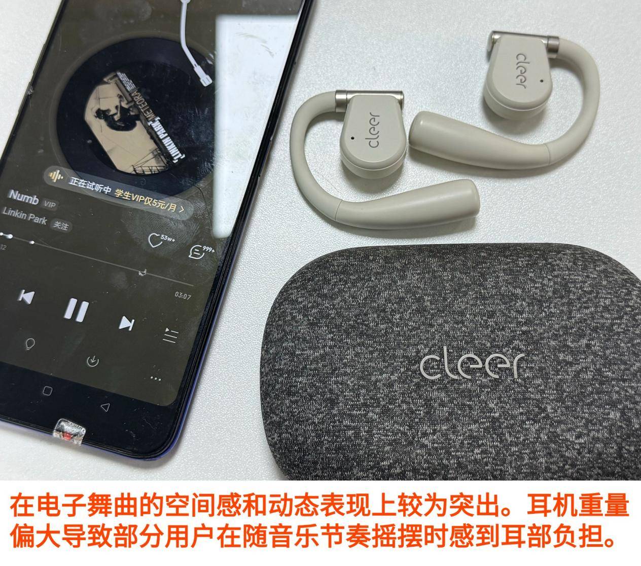 Cleer ARC II 在三款产品里相对偏重,单耳约 14 克。短时间佩戴感受还算不错,但持续超过两小时后耳朵明显会产生疲劳感。运动状态下,它的贴合度比 Comfo Fit II 更强,但因为重量偏大,在高强度运动或出汗环境下,稳固性与舒适度都会有所下降。
