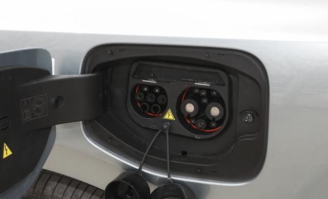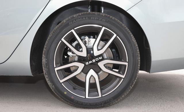 荣威纯电D6的侧面设计挺有特色,用的是溜背式的风格,车顶到后备箱那里很顺畅地就连上了,车门把手也是常见的那种样式。另外,这车的轮毂是17英寸的,双五辐设计,挺好看的。充电口嘛,就在左前翼子板那块地方。